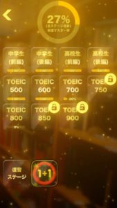 私は今の所、Readingしか試してないのでそれだけご紹介させていただきます。操作は単純。上から降ってくる単語の和訳を選択肢から選んでタップ!!タップ!!タップ!!するだけ。通常のステージは時間経過で選択肢が絞られていくのでどんどん回答しやすくなります。